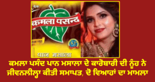 Kamla Pasand : ਕਮਲਾ ਪਸੰਦ ਪਾਨ ਮਸਾਲਾ ਦੇ ਕਾਰੋਬਾਰੀ ਦੀ ਨੂੰਹ ਨੇ ਜੀਵਨਲੀਲ੍ਹਾ ਕੀਤੀ ਸਮਾਪਤ, ਦੋ ਵਿਆਹਾਂ ਦੀ ਸਾਹਮਣੇ ਆ ਰਹੀ ਗੱਲ Kamla Pasand Pan Masala : ਕਮਲਾ ਪਸੰਦ ਅਤੇ ਰਾਜਸ਼੍ਰੀ ਪਾਨ ਮਸਾਲਾ ਦੇ ਮਾਲਕ ਕਮਲ ਕਿਸ਼ੋਰ ਦੀ ਨੂੰਹ …