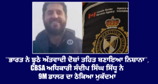 Sandeep Singh Sidhu Case : ”ਭਾਰਤ ਨੇ ਝੂਠੇ ਅੱਤਵਾਦੀ ਦੋਸ਼ਾਂ ਤਹਿਤ ਬਣਾਇਆ ਨਿਸ਼ਾਨਾ”, CBSA ਅਧਿਕਾਰੀ ਨੇ 9M ਡਾਲਰ ਦਾ ਠੋਕਿਆ ਮੁਕੱਦਮਾ ਕੈਨੇਡਾ ਬਾਰਡਰ ਸਰਵਿਸਿਜ਼ ਏਜੰਸੀ (CBSA) ਦੇ ਇੱਕ ਸੀਨੀਅਰ ਅਧਿਕਾਰੀ ਨੇ ਭਾਰਤ ਸਰਕਾਰ ਵਿਰੁੱਧ 9 ਮਿਲੀਅਨ ਡਾਲਰ ਦਾ ਮੁਕੱਦਮਾ ਦਾਇਰ ਕੀਤਾ ਹੈ, ਜਿਸ ਵਿੱਚ ਦਾਅਵਾ ਕੀਤਾ …
