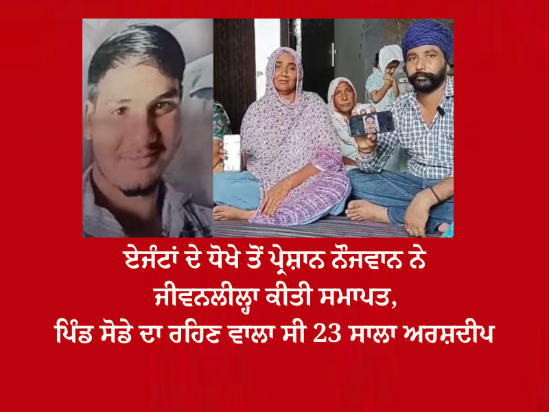 Ferozepur News : ਏਜੰਟਾਂ ਦੇ ਧੋਖੇ ਤੋਂ ਪ੍ਰੇਸ਼ਾਨ ਨੌਜਵਾਨ ਨੇ ਜੀਵਨਲੀਲ੍ਹਾ ਕੀਤੀ ਸਮਾਪਤ, ਪਿੰਡ ਸੋਡੇ ਦਾ ਰਹਿਣ ਵਾਲਾ ਸੀ 23 ਸਾਲਾ ਅਰਸ਼ਦੀਪ