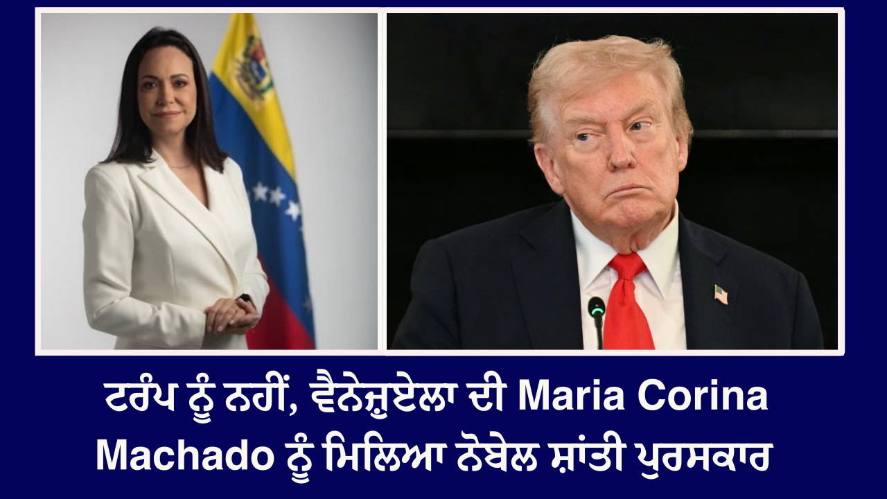 Trump ਨੂੰ ਨਹੀਂ, ਵੈਨੇਜ਼ੁਏਲਾ ਦੀ Maria Corina Machado ਨੂੰ ਮਿਲਿਆ ਨੋਬੇਲ ਸ਼ਾਂਤੀ ਪੁਰਸਕਾਰ