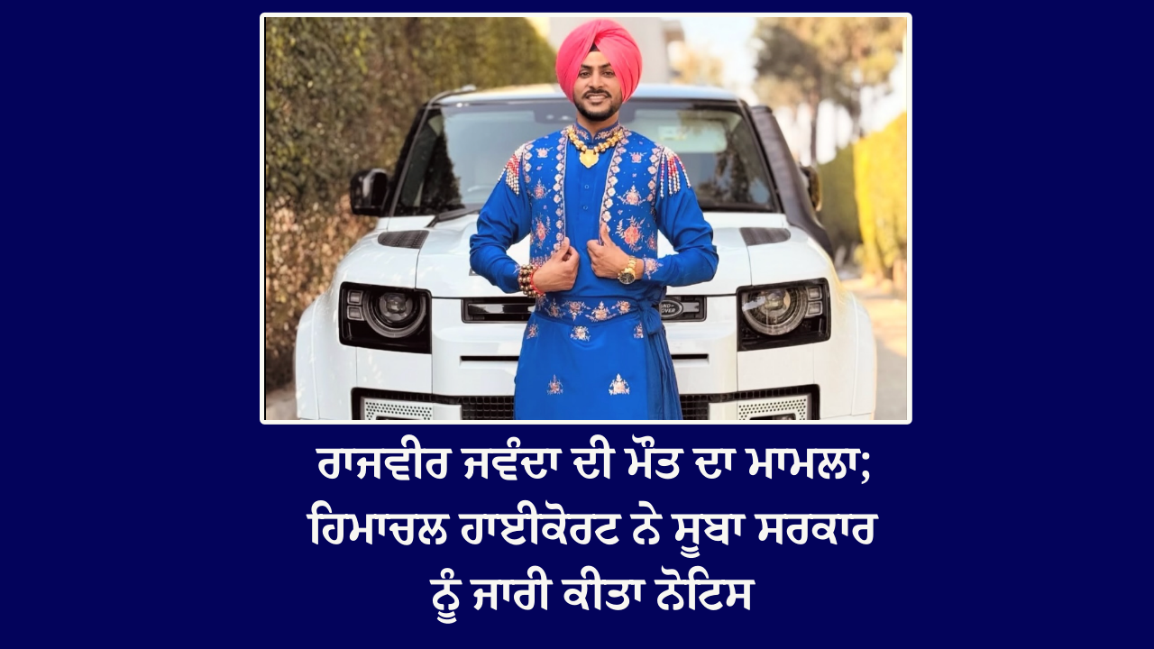Punjabi Singer Rajvir Jawanda : ਮਰਹੂਮ ਗਾਇਕ ਰਾਜਵੀਰ ਜਵੰਦਾ ਦੀ ਮੌਤ ਦਾ ਮਾਮਲਾ; ਹਿਮਾਚਲ ਹਾਈਕੋਰਟ ਨੇ ਸੂਬਾ ਸਰਕਾਰ ਨੂੰ ਜਾਰੀ ਕੀਤਾ ਨੋਟਿਸ