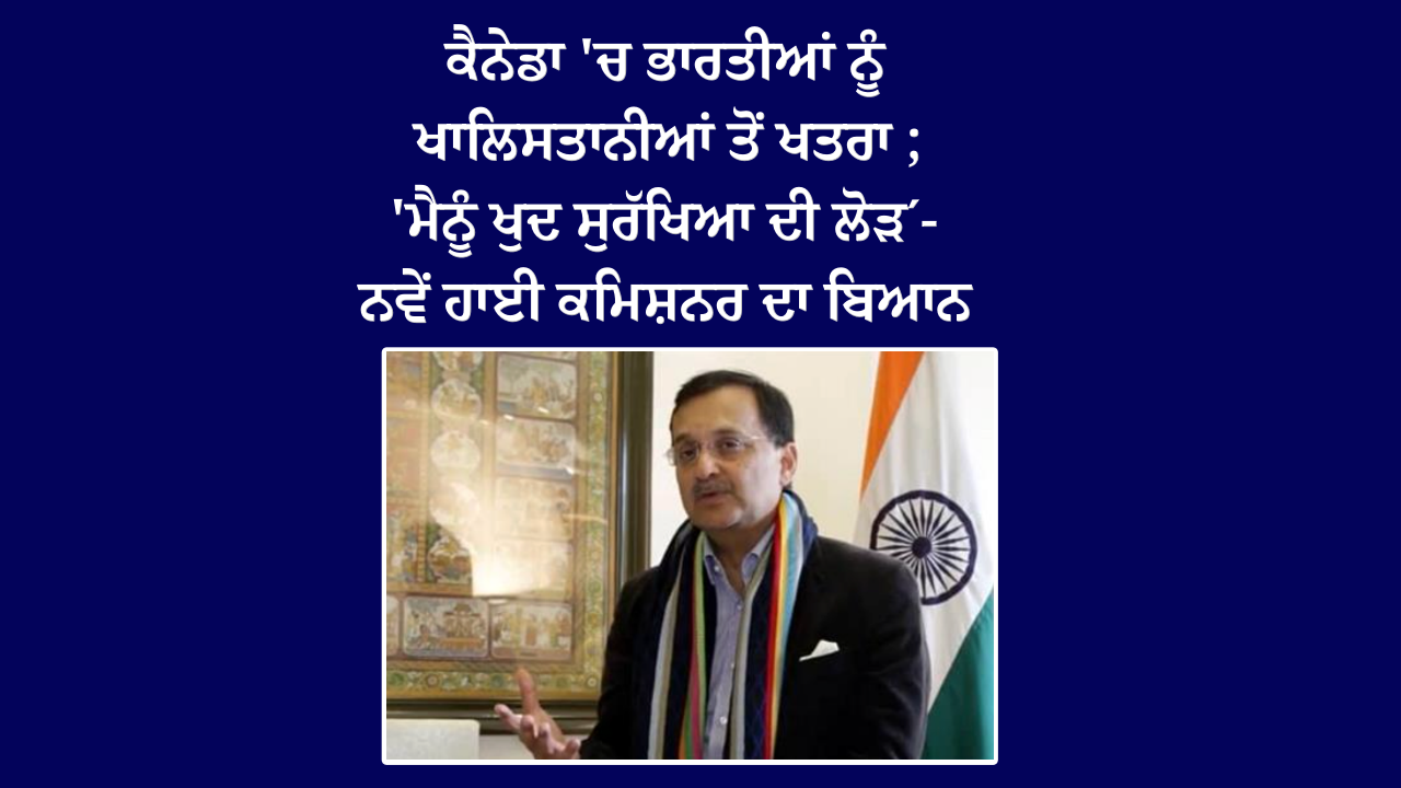ਕੈਨੇਡਾ ‘ਚ ਭਾਰਤੀਆਂ ਨੂੰ ਖਾਲਿਸਤਾਨੀਆਂ ਤੋਂ ਖਤਰਾ ; ‘ਮੈਨੂੰ ਖੁਦ ਸੁਰੱਖਿਆ ਦੀ ਲੋੜ´-ਨਵੇਂ ਹਾਈ ਕਮਿਸ਼ਨਰ ਦਾ ਬਿਆਨ