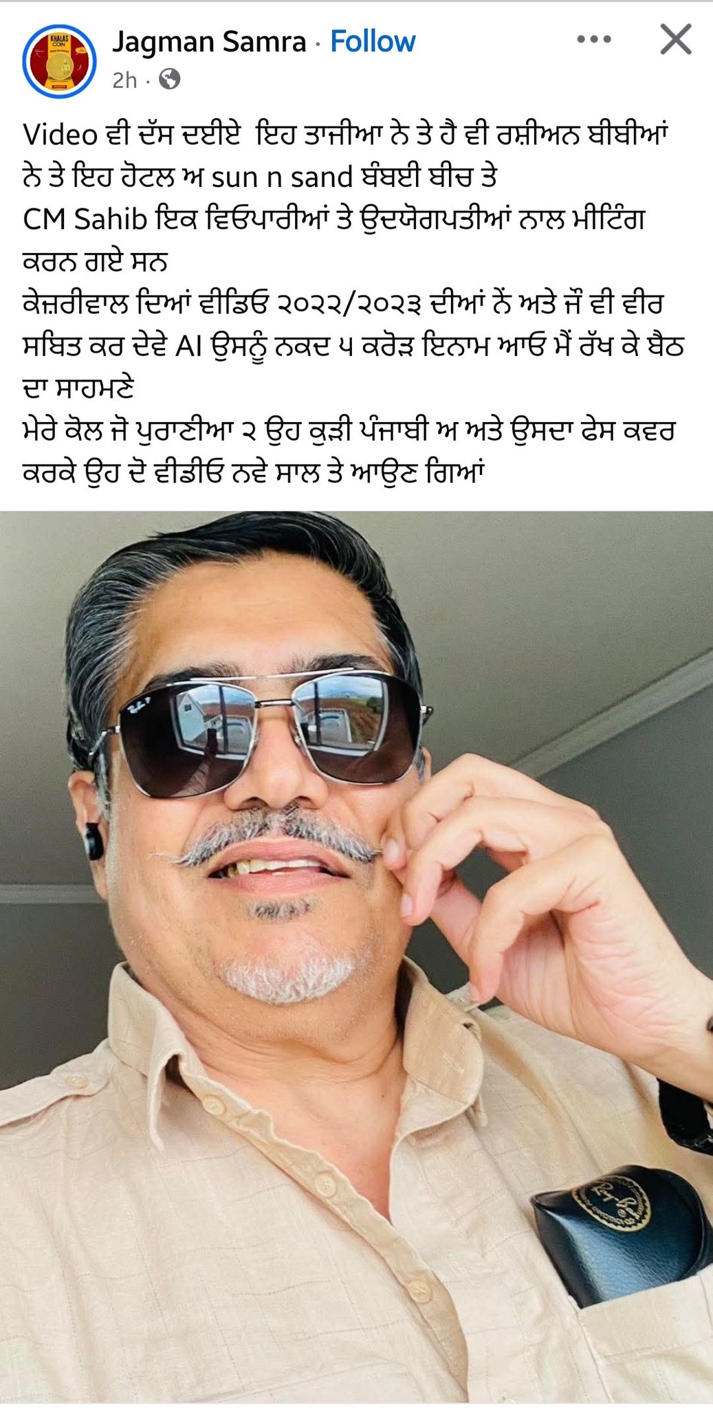 According to the FIR, a person identified as Jagman Samra was involved in making and sharing fake videos aimed at tarnishing the Chief Minister’s image. However, Jagman Samra uploaded a fb post in which he says if anyone proves the video is AI generated, he will pay 5 crores.