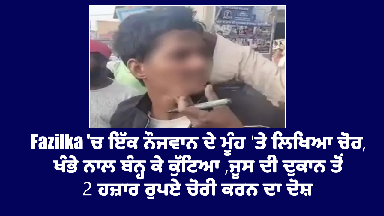 Fazilka ‘ਚ ਇੱਕ ਨੌਜਵਾਨ ਦੇ ਮੂੰਹ ‘ਤੇ ਲਿਖਿਆ ਚੋਰ ,ਖੰਭੇ ਨਾਲ ਬੰਨ੍ਹ ਕੇ ਕੁੱਟਿਆ ,ਜੂਸ ਦੀ ਦੁਕਾਨ ਤੋਂ 2 ਹਜ਼ਾਰ ਰੁਪਏ ਚੋਰੀ ਕਰਨ ਦਾ ਦੋਸ਼
