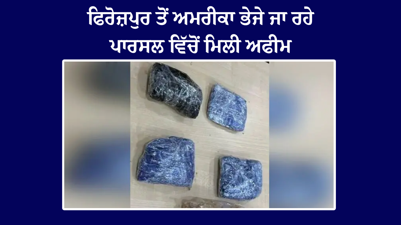 ਫਿਰੋਜ਼ਪੁਰ ਤੋਂ ਅਮਰੀਕਾ ‘ਚ ਭੇਜੇ ਜਾਣ ਵਾਲੇ ਪਾਰਸਲ ਵਿੱਚੋਂ ਅਫੀਮ ਮਿਲਣ ਦੀ ਖਬਰ ਸਾਹਮਣੇ ਆਈ ਹੈ। ਇਹ ਅਫੀਮ ਫਿਰੋਜ਼ਪੁਰ ਤੋਂ ਕੈਲੀਫੋਰਨੀਆ (ਅਮਰੀਕਾ) ਭੇਜੀ ਜਾ ਰਹੀ ਸੀ, ਜੋ ਕਿ ਇੱਕ ਪਾਰਸਲ ਵਿੱਚੋਂ ਬਰਾਮਦ ਕੀਤੀ ਗਈ। ਇਹ ਬਰਾਮਦਗੀ ਲੁਧਿਆਣਾ ਵਿੱਚ ਡਾਇਰੈਕਟੋਰੇਟ ਆਫ਼ ਰੈਵੇਨਿਊ ਇੰਟੈਲੀਜੈਂਸ (ਡੀਆਰਆਈ) ਜ਼ੋਨਲ ਯੂਨਿਟ ਵੱਲੋਂ ਕੀਤੀ ਗਈ ਹੈ। ਡੀਆਰਆਈ ਨੇ 10.3 ਲੱਖ ਰੁਪਏ ਦੀ 735 ਗ੍ਰਾਮ ਅਫੀਮ ਜ਼ਬਤ ਕੀਤੀ ਹੈ।