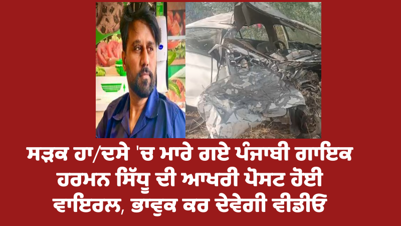 ਸੜਕ ਹਾ/ਦਸੇ ‘ਚ ਮਾਰੇ ਗਏ ਪੰਜਾਬੀ ਗਾਇਕ ਹਰਮਨ ਸਿੱਧੂ ਦੀ ਆਖਰੀ ਪੋਸਟ ਹੋਈ ਵਾਇਰਲ, ਭਾਵੁਕ ਕਰ ਦੇਵੇਗੀ ਵੀਡੀਓ