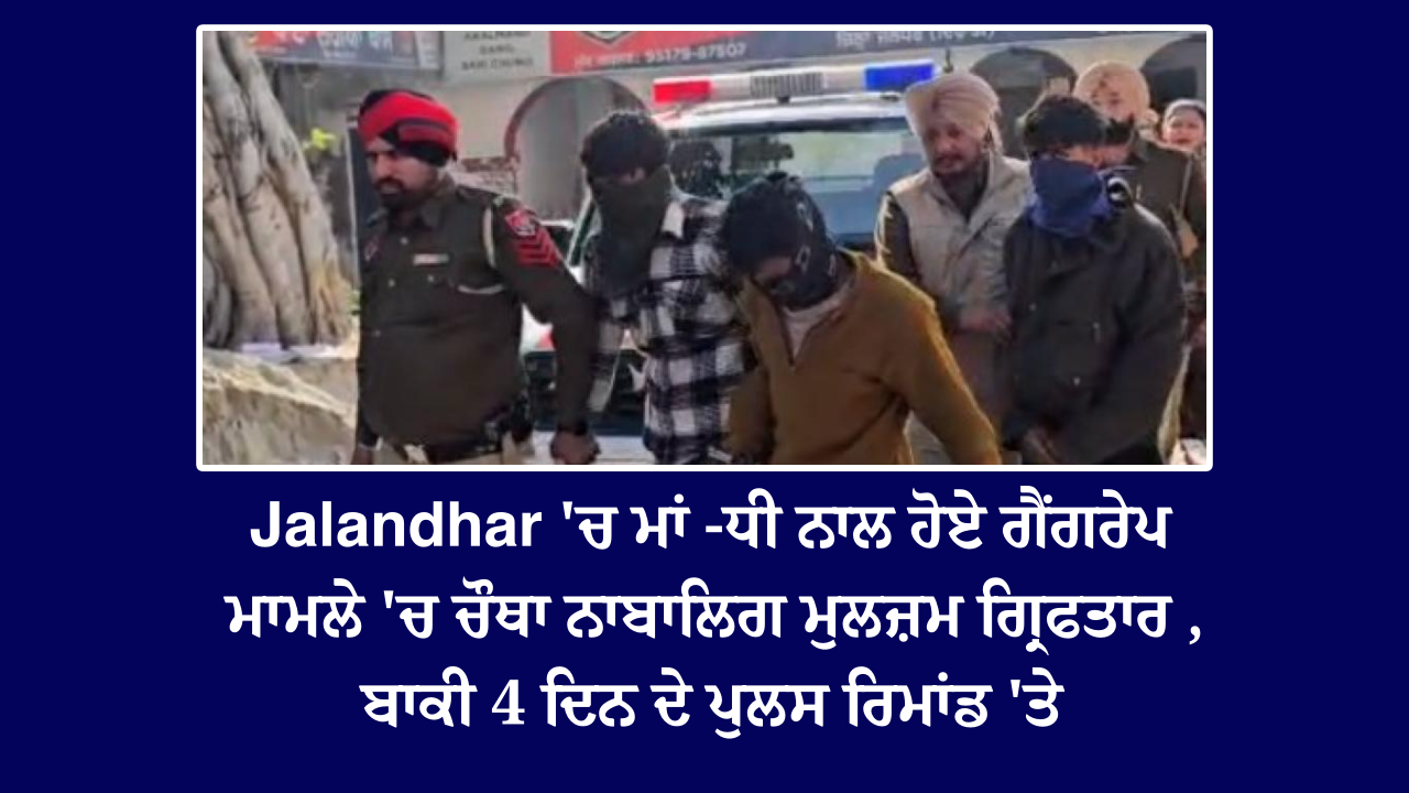 Jalandhar ‘ਚ ਮਾਂ -ਧੀ ਨਾਲ ਹੋਏ ਗੈਂਗਰੇਪ ਮਾਮਲੇ ‘ਚ ਚੌਥਾ ਨਾਬਾਲਿਗ ਮੁਲਜ਼ਮ ਗ੍ਰਿਫਤਾਰ ,ਬਾਕੀ 4 ਦਿਨ ਦੇ ਪੁਲਸ ਰਿਮਾਂਡ ‘ਤੇ