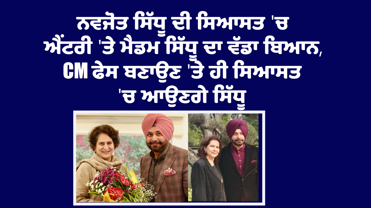 ਨਵਜੋਤ ਸਿੱਧੂ ਦੀ ਸਿਆਸਤ ‘ਚ ਐਂਟਰੀ ‘ਤੇ ਮੈਡਮ ਸਿੱਧੂ ਦਾ ਵੱਡਾ ਬਿਆਨ, CM ਫੇਸ ਬਣਾਉਣ ‘ਤੇ ਹੀ ਸਿਆਸਤ ‘ਚ ਆਉਣਗੇ ਸਿੱਧੂ