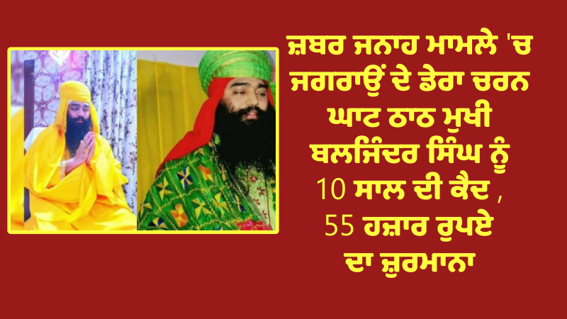 ਜ਼ਬਰ ਜਨਾਹ ਮਾਮਲੇ ‘ਚ ਜਗਰਾਉਂ ਦੇ ਡੇਰਾ ਚਰਨ ਘਾਟ ਠਾਠ ਮੁਖੀ ਬਲਜਿੰਦਰ ਸਿੰਘ ਨੂੰ 10 ਸਾਲ ਦੀ ਕੈਦ , 55 ਹਜ਼ਾਰ ਰੁਪਏ ਦਾ ਜ਼ੁਰਮਾਨਾ