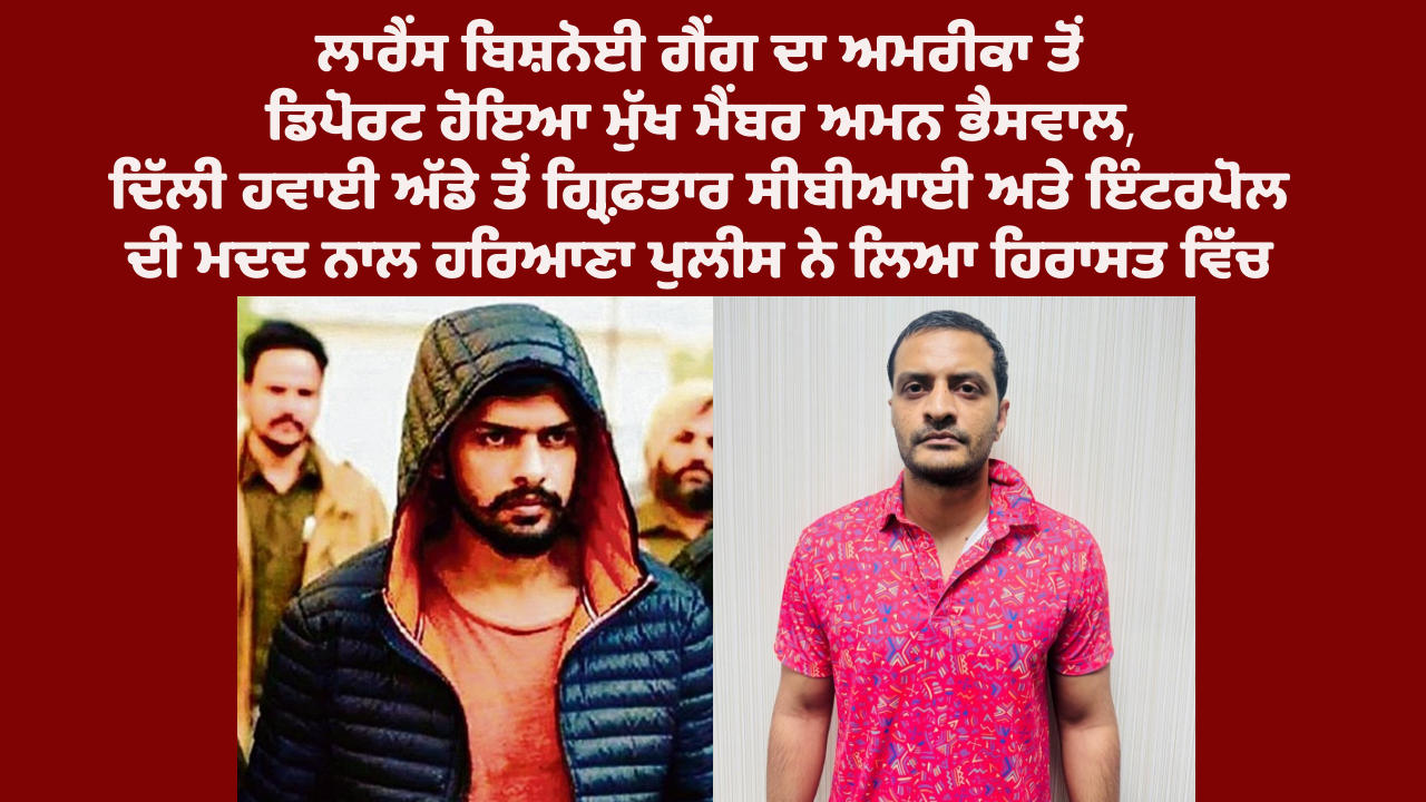 ਲਾਰੈਂਸ ਬਿਸ਼ਨੋਈ ਗੈਂਗ ਦਾ ਅਮਰੀਕਾ ਤੋਂ ਡਿਪੋਰਟ ਹੋਇਆ ਮੁੱਖ ਮੈਂਬਰ ਅਮਨ ਭੈਸਵਾਲ, ਦਿੱਲੀ ਹਵਾਈ ਅੱਡੇ ਤੋਂ ਗ੍ਰਿਫ਼ਤਾਰ