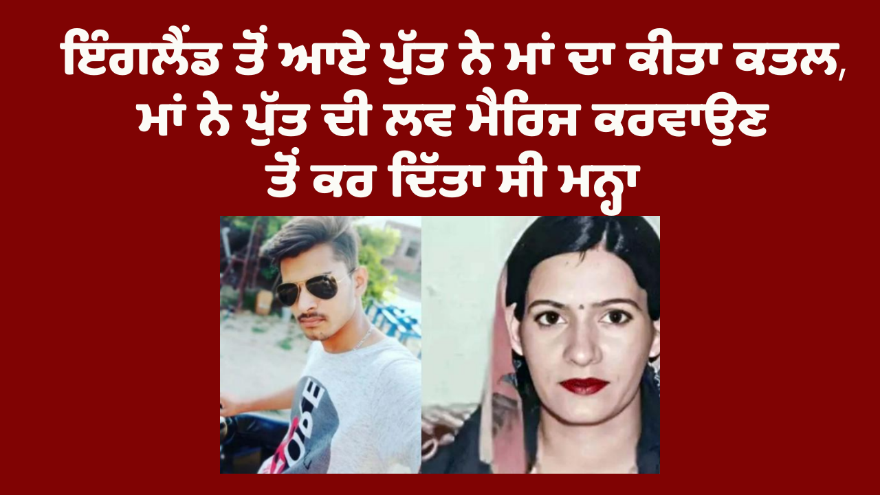 ਇੰਗਲੈਂਡ ਤੋਂ ਆਏ ਪੁੱਤ ਨੇ ਮਾਂ ਦਾ ਕੀਤਾ ਕਤਲ, ਮਾਂ ਨੇ ਪੁੱਤ ਦੀ ਲਵ ਮੈਰਿਜ ਕਰਵਾਉਣ ਤੋਂ ਕਰ ਦਿੱਤਾ ਸੀ ਮਨ੍ਹਾ