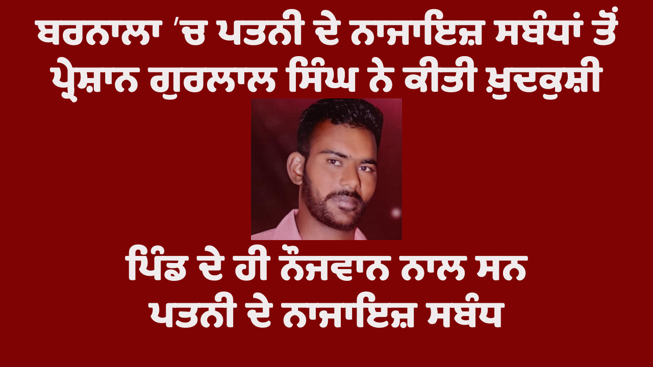 Barnala – ਬਰਨਾਲਾ ’ਚ ਪਤਨੀ ਦੇ ਨਾਜਾਇਜ਼ ਸਬੰਧਾਂ ਤੋਂ ਪ੍ਰੇਸ਼ਾਨ ਗੁਰਲਾਲ ਸਿੰਘ ਨੇ ਕੀਤੀ ਖ਼ੁਦਕੁਸ਼ੀ