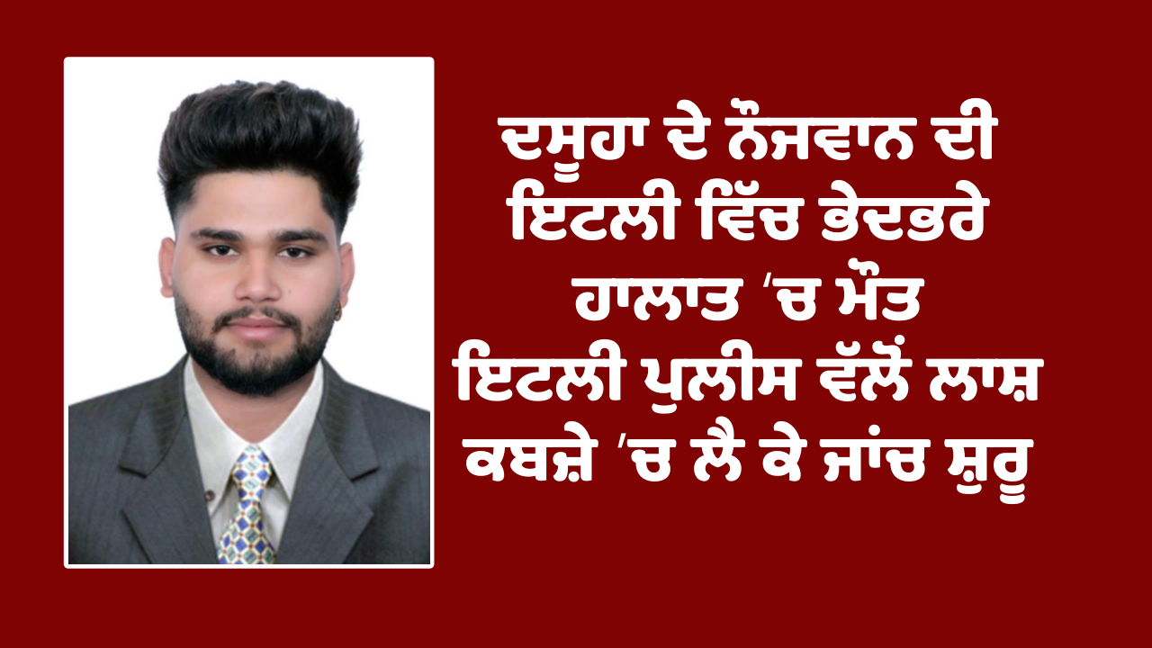 ਦਸੂਹਾ ਦੇ ਨੌਜਵਾਨ ਦੀ ਇਟਲੀ ਵਿੱਚ ਭੇਦਭਰੇ ਹਾਲਾਤ ‘ਚ ਮੌਤ
