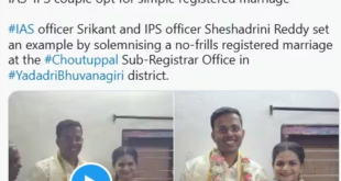 IAS-IPS Story – ਮਹਿਲਾ DCP ਨੇ IAS ਨਾਲ ਕੋਰਟ ‘ਚ ਕਰਵਾਇਆ ਵਿਆਹ, ਫੋਟੋਆਂ ਹੋਈਆਂ ਵਾਇਰਲ… IAS-IPS Story, Viral Story: ਸੋਸ਼ਲ ਮੀਡੀਆ ‘ਤੇ ਕਈ ਵਾਰ, ਅਜਿਹੀਆਂ ਕਹਾਣੀਆਂ ਵਾਇਰਲ ਹੋ ਜਾਂਦੀਆਂ ਹਨ, ਜੋ ਦਿਲ ਨੂੰ ਛੂਹ ਲੈਂਦੀਆਂ ਹਨ। ਤੇਲੰਗਾਨਾ ਦੇ ਇੱਕ ਆਈਏਐਸ ਅਤੇ ਆਈਪੀਐਸ ਅਧਿਕਾਰੀ ਨੇ ਇੱਕ ਸਾਦਾ, ਬਿਨਾਂ ਕਿਸੇ ਦਿਖਾਵੇ ਦੇ …