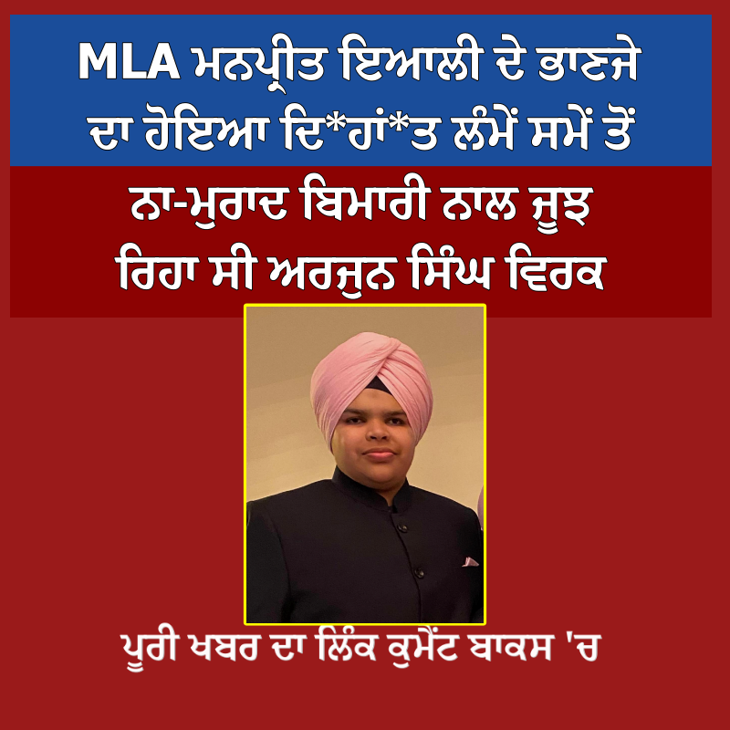 MLA ਮਨਪ੍ਰੀਤ ਇਆਲੀ ਦੇ ਭਾਣਜੇ ਦਾ ਹੋਇਆ ਦਿ*ਹਾਂ*ਤ ਲੰਮੇਂ ਸਮੇਂ ਤੋਂ ਨਾ-ਮੁਰਾਦ ਬਿਮਾਰੀ ਨਾਲ ਜੂਝ ਰਿਹਾ ਸੀ ਅਰਜੁਨ ਸਿੰਘ ਵਿਰਕ