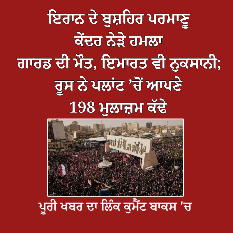 Iran – ਇਰਾਨ ਦੇ ਬੁਸ਼ਹਿਰ ਪਰਮਾਣੂ ਕੇਂਦਰ ਨੇੜੇ ਹਮਲਾ