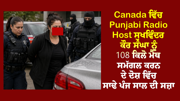 Canada ਵਿੱਚ Punjabi Radio Host ਸੁਖਵਿੰਦਰ ਕੌਰ ਸੰਘਾ ਨੂੰ ਮੈਥ ਸਮੱਗਲ ਕਰਨ ਦੇ ਦੋਸ਼ ਵਿੱਚ ਸਾਢੇ ਪੰਜ ਸਾਲ ਦੀ ਸਜ਼ਾ